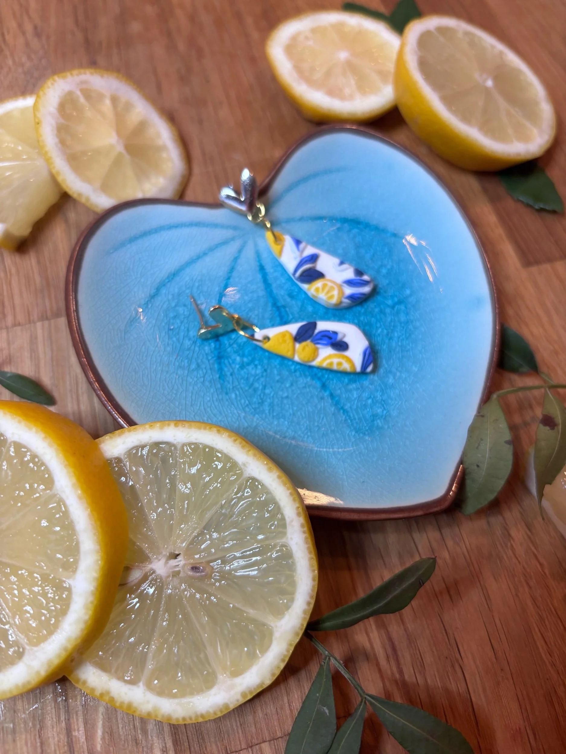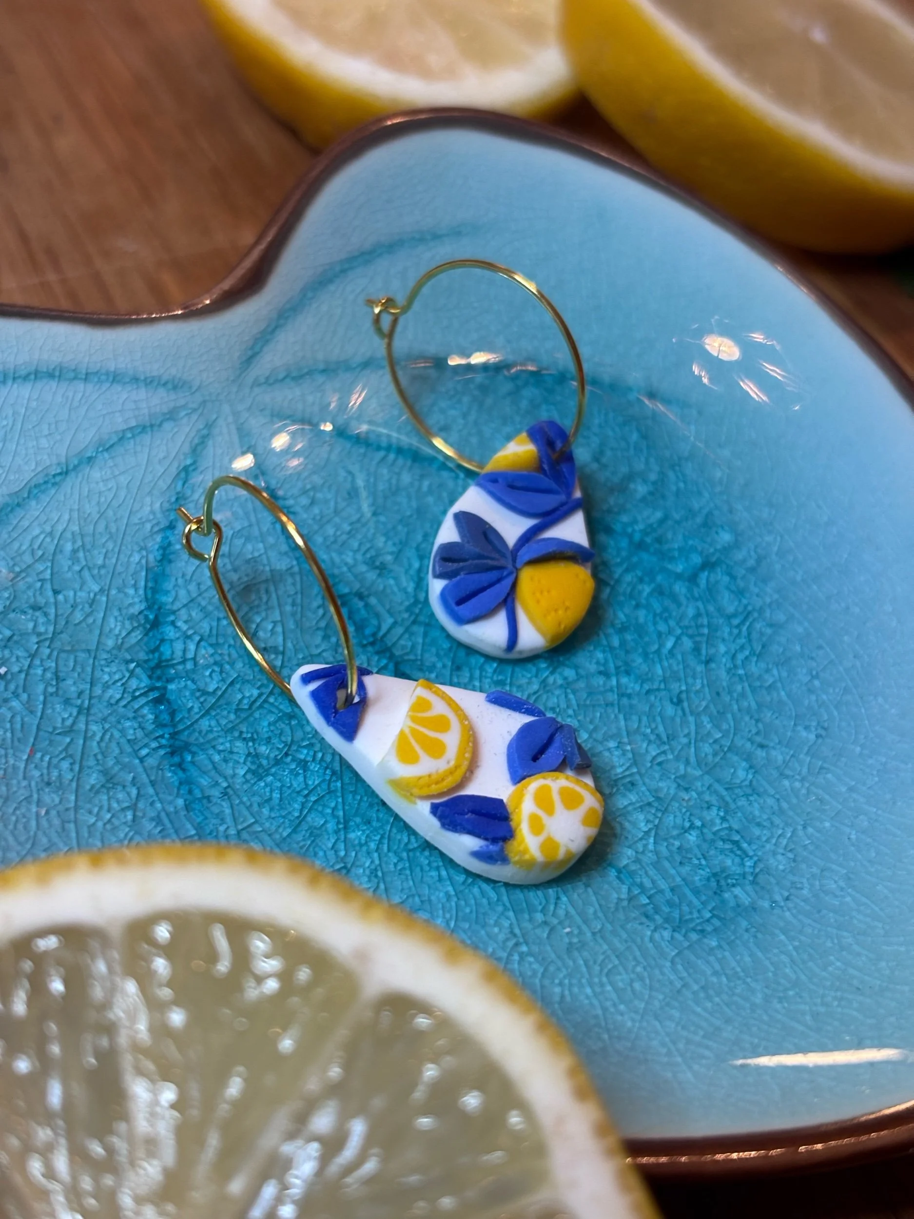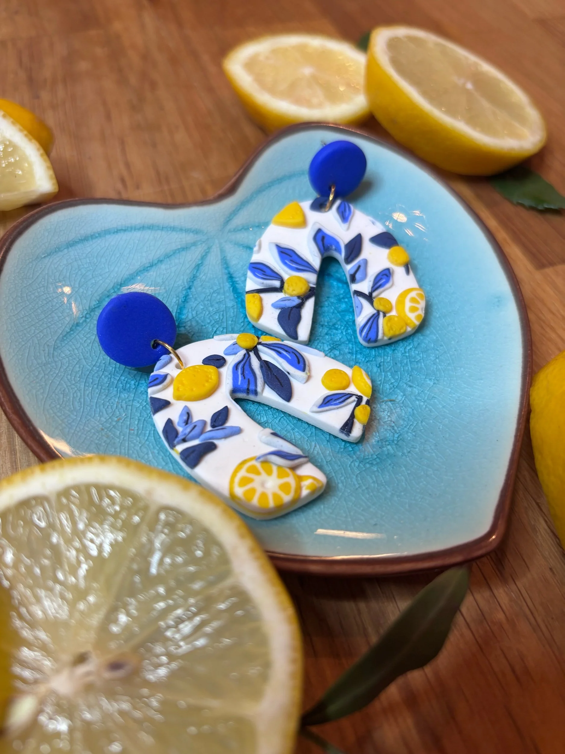 Shop Categories: All Arrangement Bouquet All | Arrangement | Bouquet | Sicilian lemon, teardrop hoop £12.00 Sicilian lemon, heart hook earrings £20.00 Sicilian lemon, brass heart earrings £15.00 Sicilian lemon small flower stud earrings £18.00 Sicilian lemon, three piece circle drop earrings £18.00 Sicilian lemon, Trapezoid earrings £26.00 Sicilian lemon teardrop earrings £26.00 Sicilian lemon arch earrings £28.00 Sicilian lemon flower earrings £26.00 Oval Sicilian lemon design earrings £20.00 Large arch stripy lemon earrings £25.00 Blue and white stripe lemon design with daisy stud £22.00 Large sunflower earrings £15.00 Pink Daisy dangle stud earrings £14.00 Tropical leaf blue tile effect earrings £20.00 Sunset ombré tropical palm earrings £18.00 Clay Your Way- Craft Box £25.00 Dark delicate floral hoop £25.00 Marble blue heart £16.00 Dark elegant floral erarrings £26.00